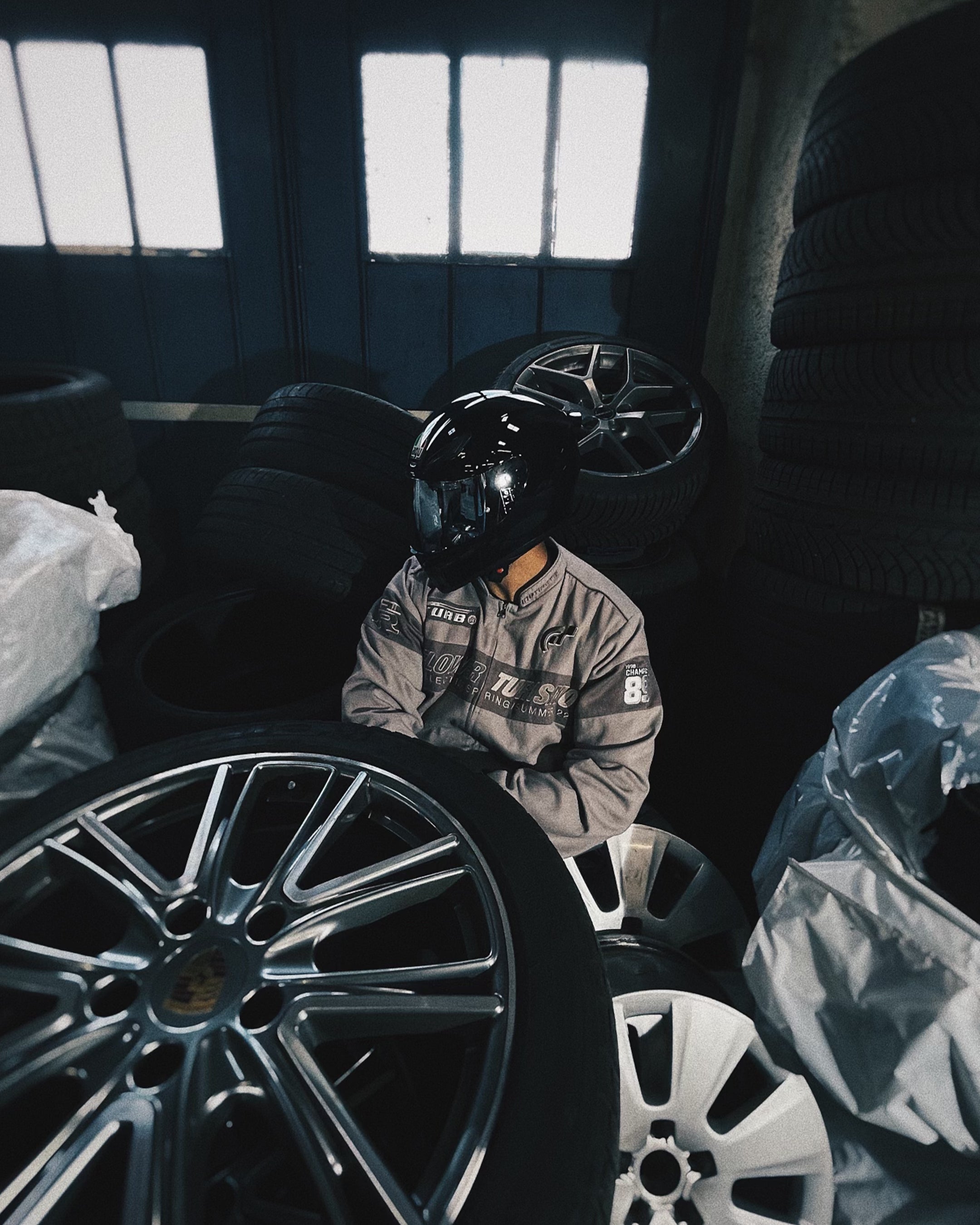 Racing crest badge on the upper arm