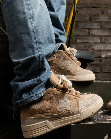 Introducing our highly anticipated Desert Eagle sneakers, ready to make a powerful statement against the wars that plague our world. Handcrafted with love in Portugal, these sneakers are adorned in elegant beige suede to pay homage to the vast deserts that hold so much history. And wait until you see the touch of baroque floral embossing we've added, it's simply enchanting.