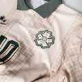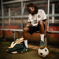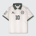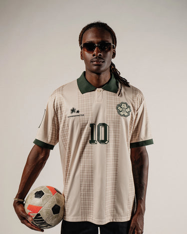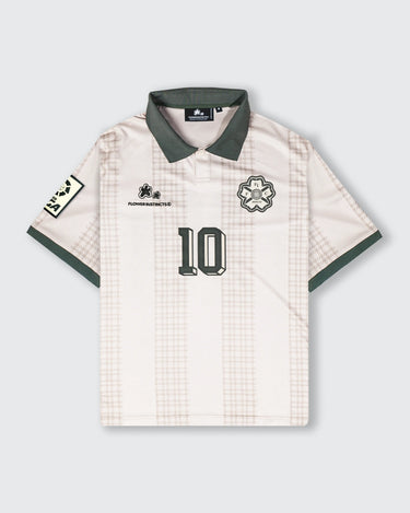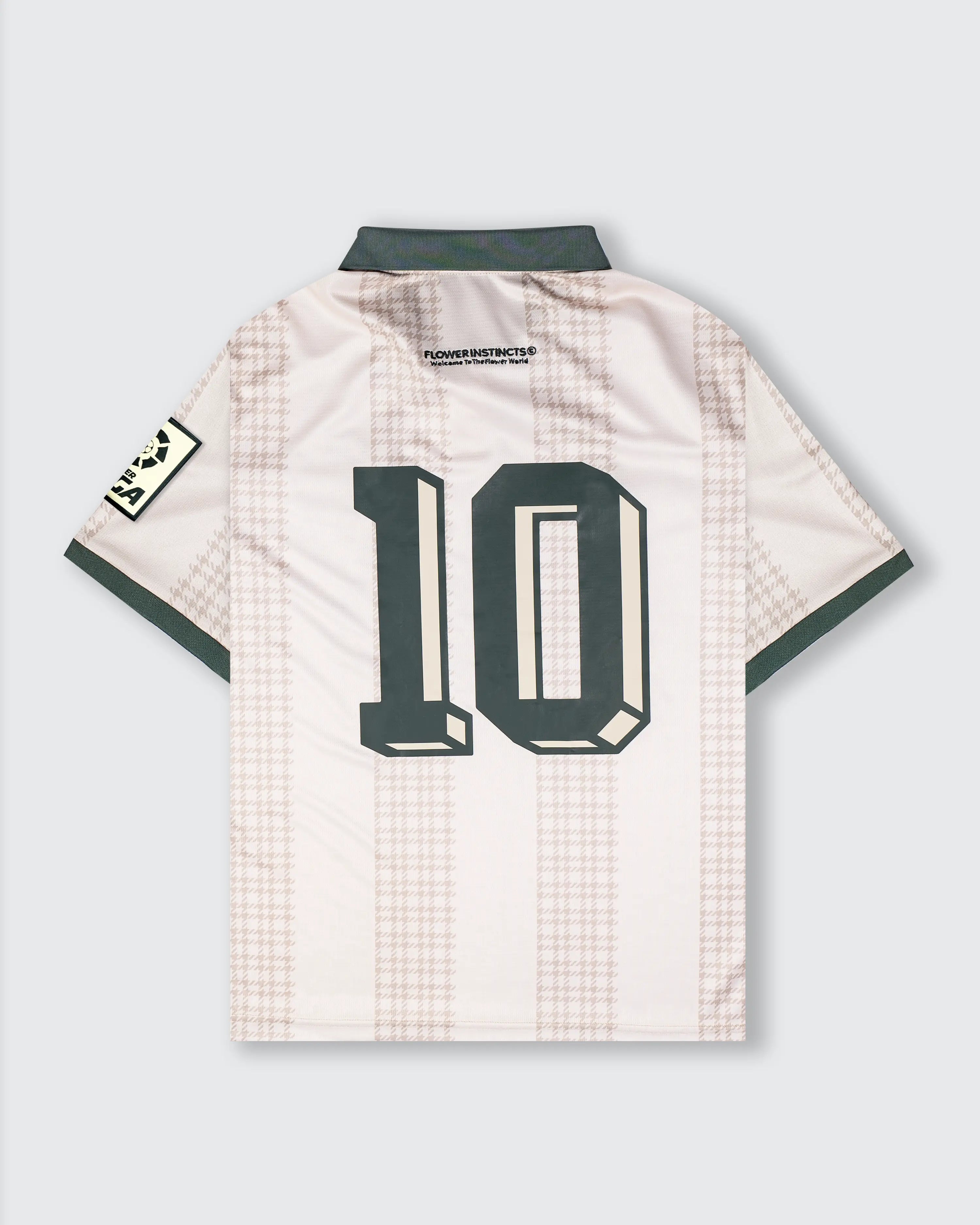 The Joga houndstooth Stripe Soccer Jersey is crafted of custom striped Tricot fabric, featuring Raglan-style sleeves, a ribbed collar, and custom Flower club artwork.