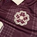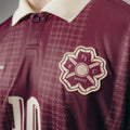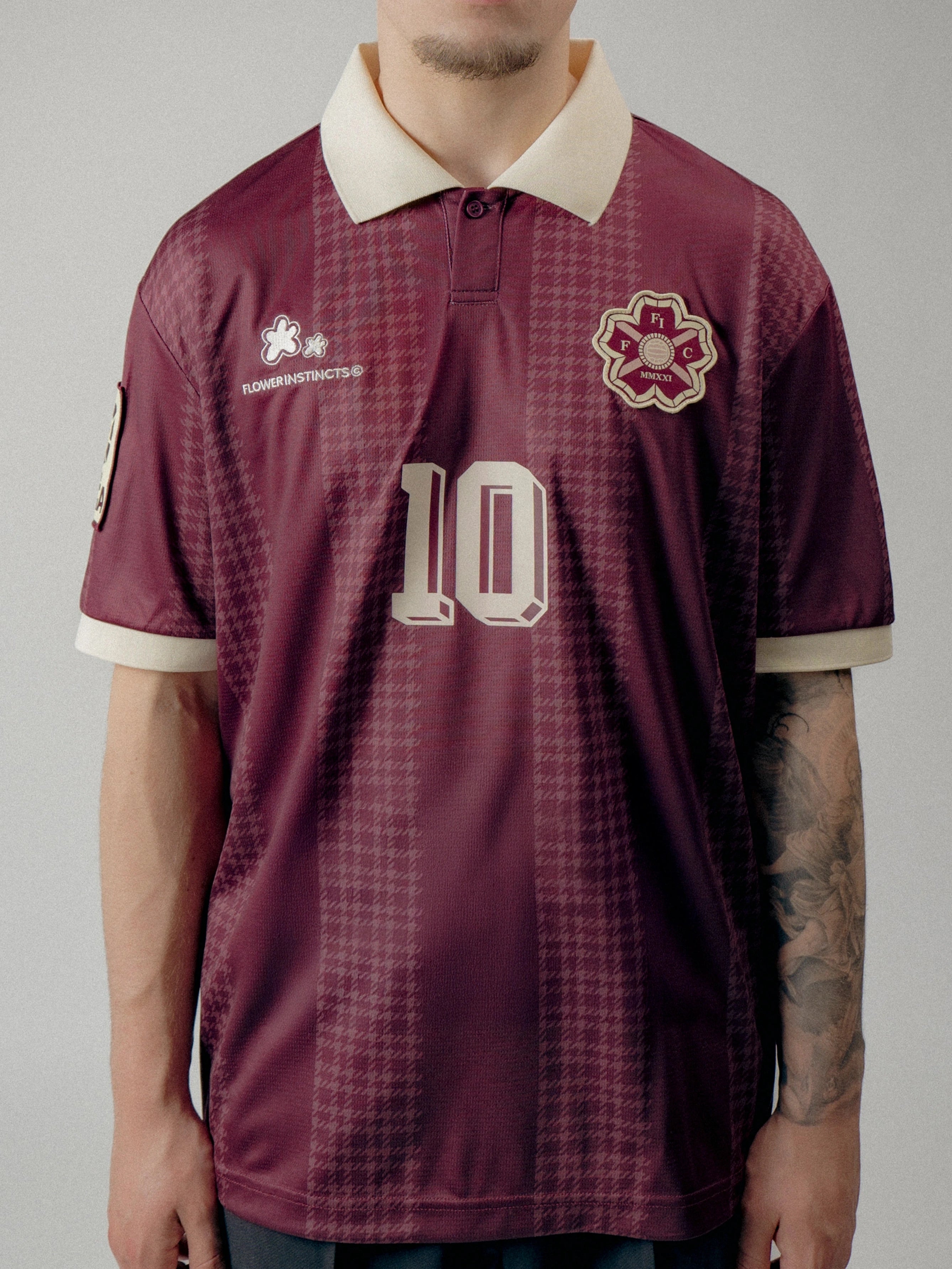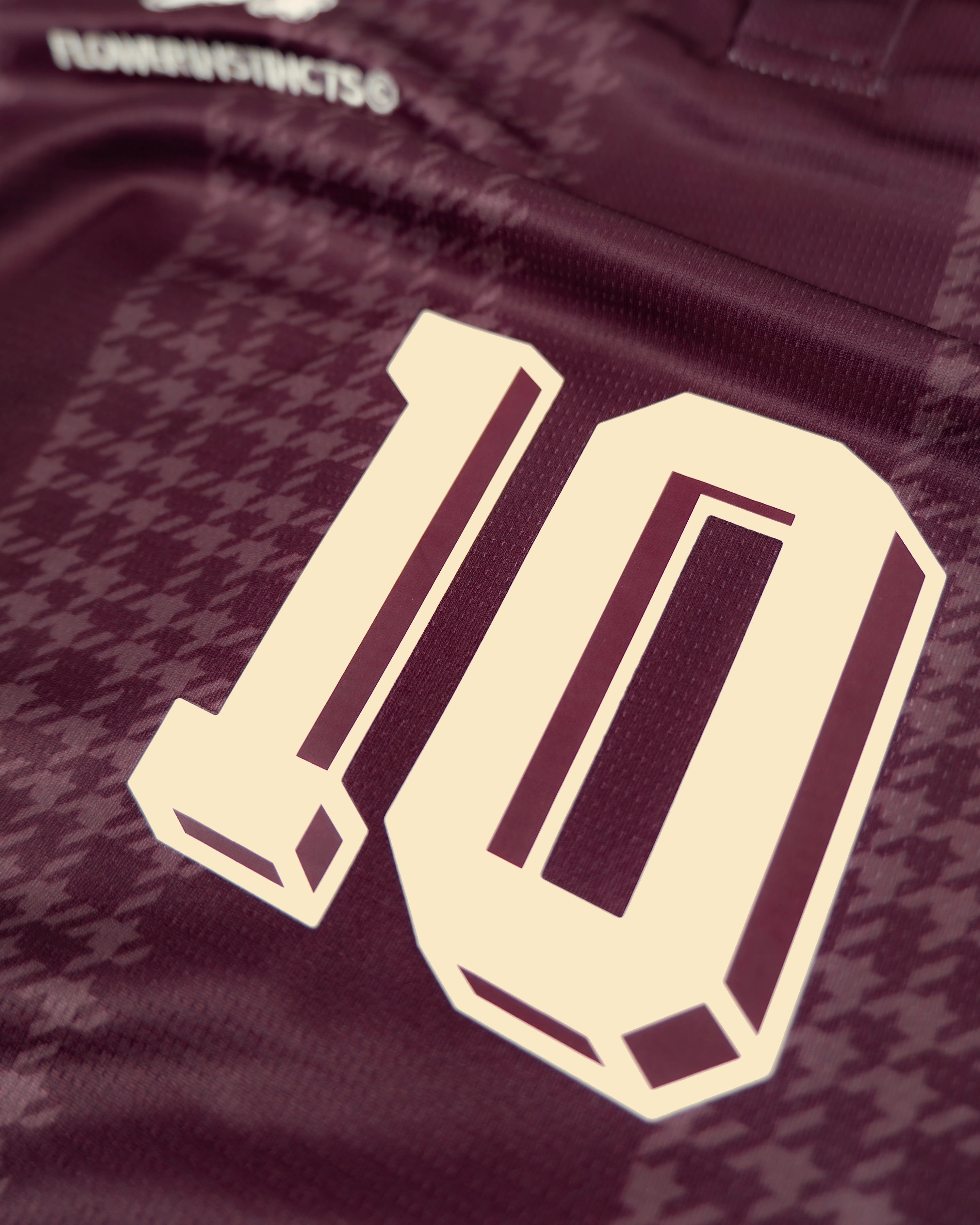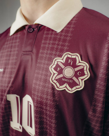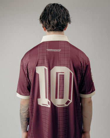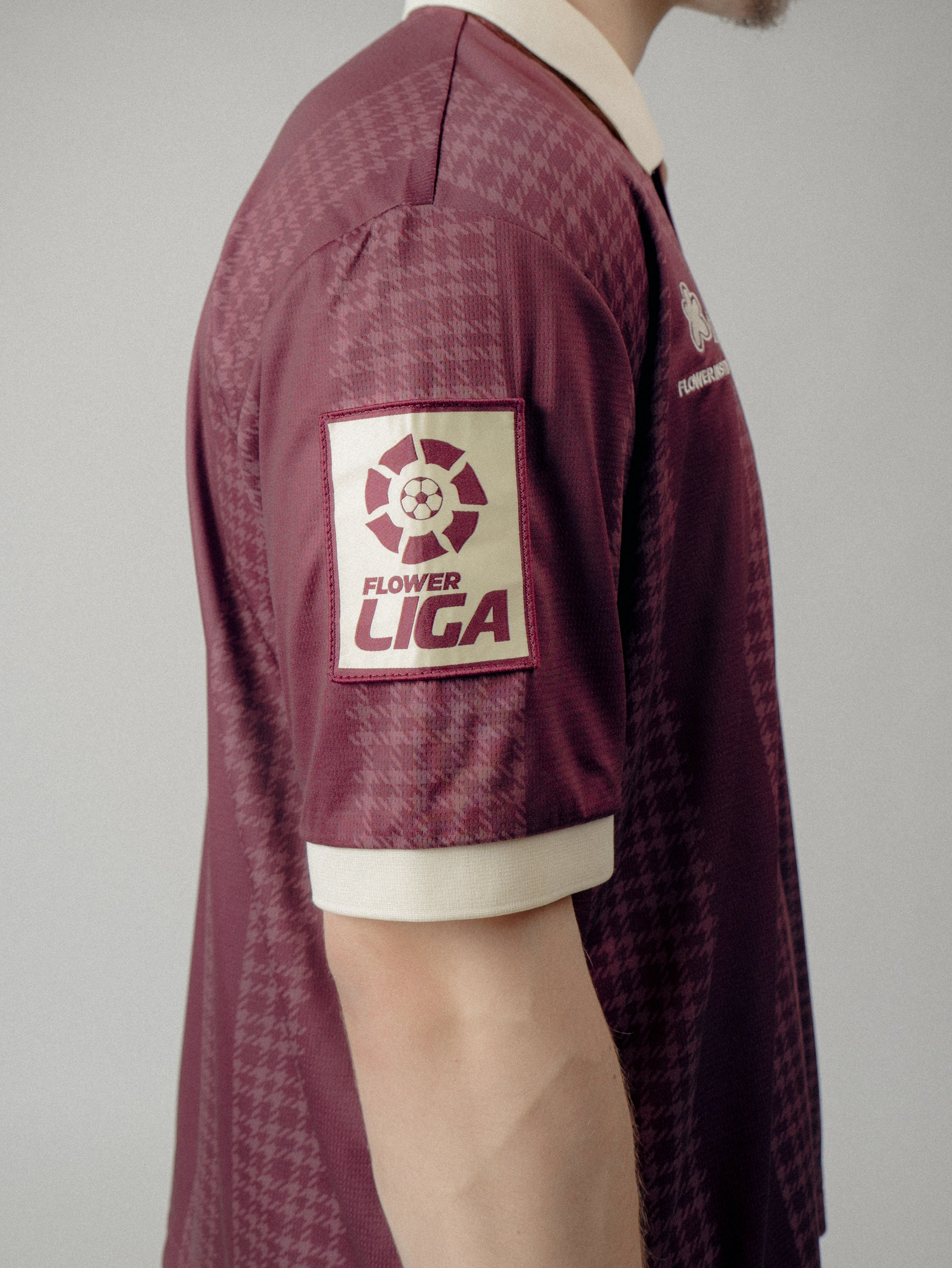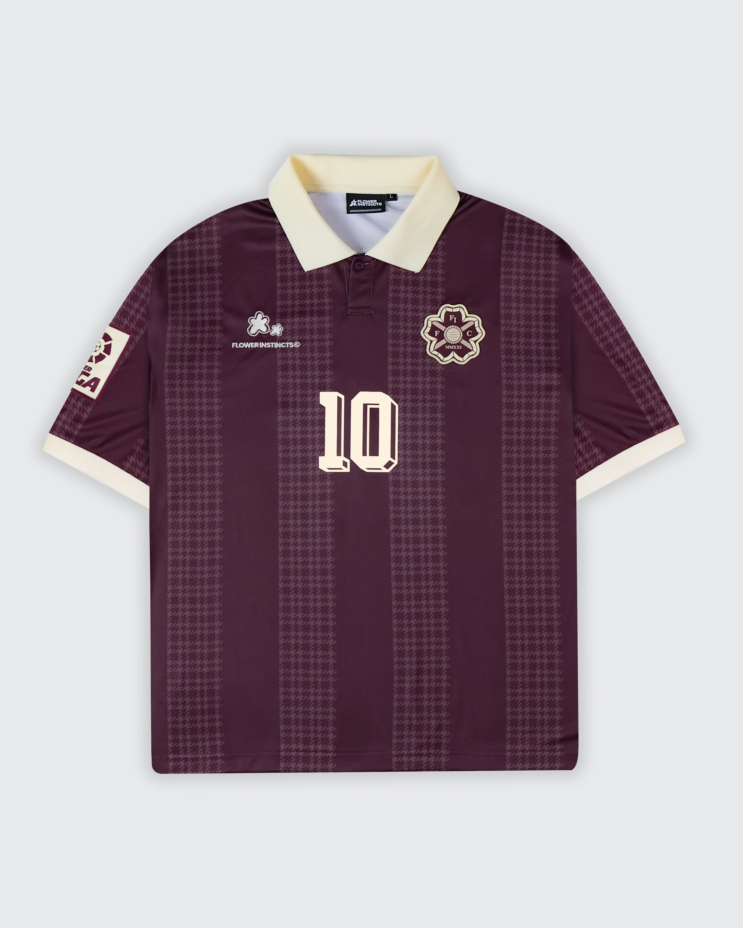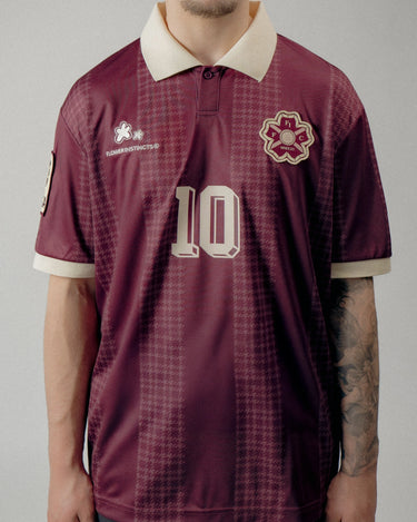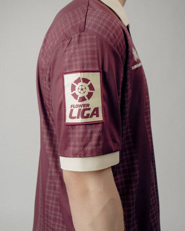 The Joga houndstooth Stripe Soccer Jersey is crafted of custom striped Tricot fabric, featuring Raglan-style sleeves, a ribbed collar, and custom Flower club artwork.