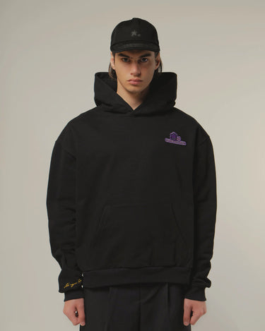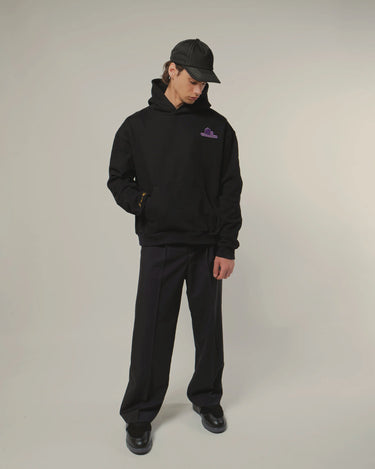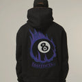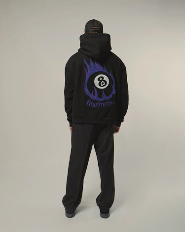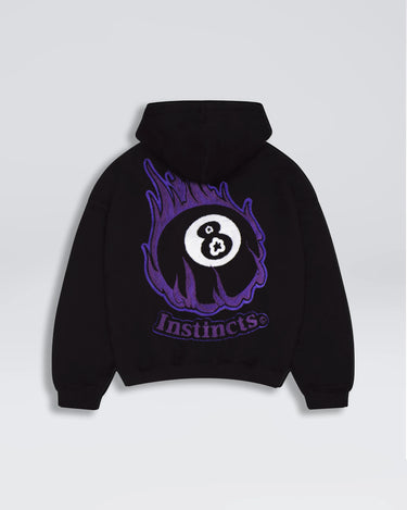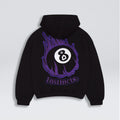 Black and purple have been combined to represent this collection. The famous 8-ball, revisited by Flower Instincts, is featured on the hoodie and varsity jacket. A pair of Flin sneakers complete this Magic Ball collection.